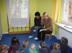 Im Rahmen des diesjährigen bundeweiten Vorlesetages war die grüne Bundestagsabgeordnete Krista Sager am Dienstag, 17.11., in der Kita Lollypop (Eichenstr.35) zu Gast, um Kindern im Altern von 3-6 Jahren Geschichten vorzulesen. Sie las aus dem Buch „Winnie - die Hexe" von Valerie Thomas und Korky Paul und die Geschichte „Helma legt die Gockel rein" von Dorothy Palanza.