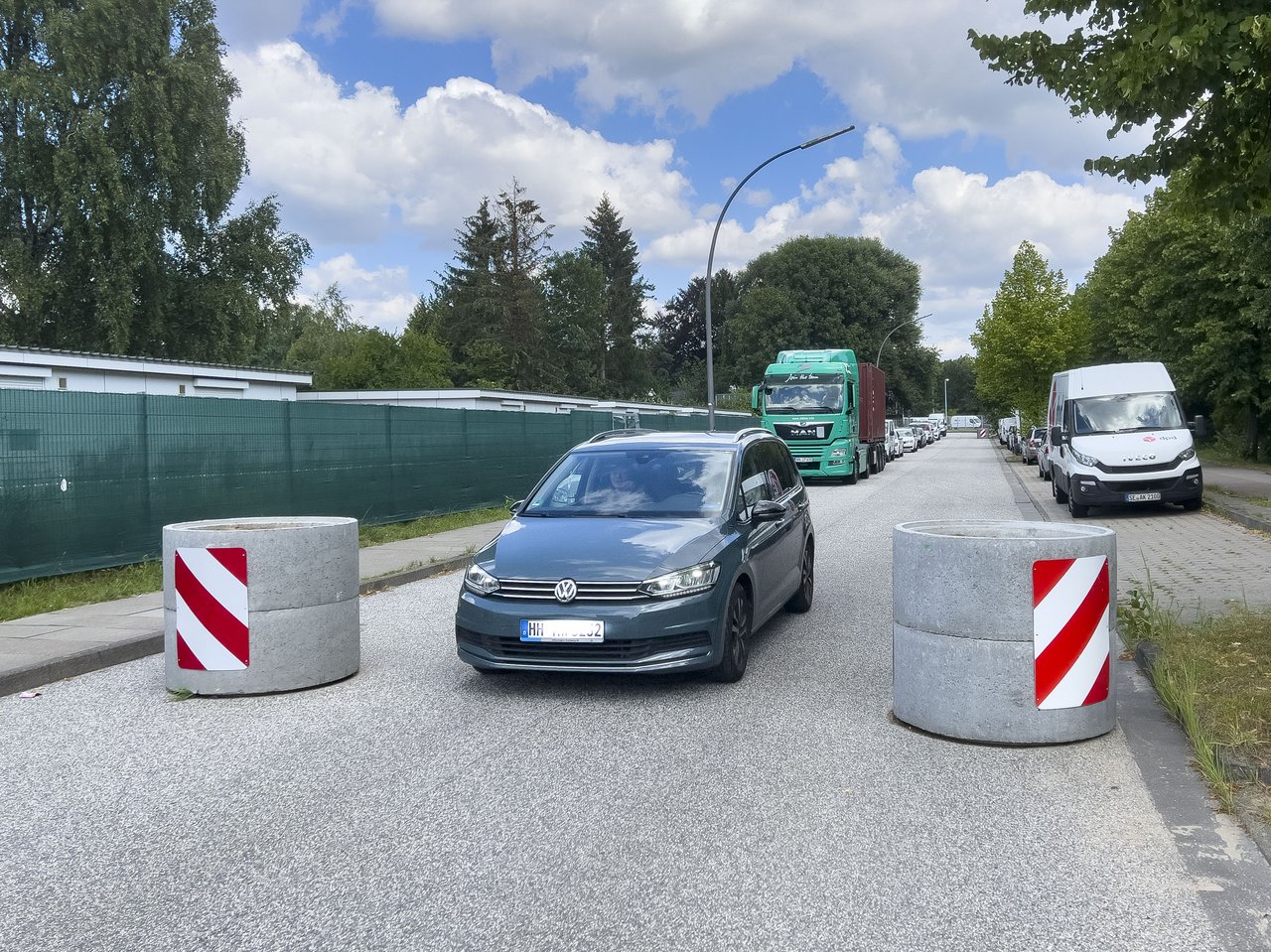 Im Punkt 3 des Petitums wird die Freigabe des Riekbornwegs für den Radverkehr in beide Richtungen und damit auch für den größeren Teil, der als Einbahnstraße ausgewiesen ist, gefordert. Die Behörde für Verkehr und Mobilität (BVM) bestätigte in ihrer Stellungnahme (Drucksache 21-3080) vom 20.6.2022, dass für den Riekbornweg grundsätzlich die Voraussetzungen gemäß der Richtlinien für die Anlage von Stadtstraßen (RA St 06) vorlägen, weil „die Restfahrbahnbreite von 4,50m bei parkenden Kfz“ vorliegt, verwies jedoch auf die letztendliche Zuständigkeit des örtlichen Polizeikommissariats. Das Polizeikommissariat (PK 24) lehnte die Freigabe der Einbahnstraße für den Radverkehr in beide Richtungen in ihrer Stellungnahme (Drs. 21-3124) ab, weil „sich im Straßenverlauf zwei nahezu rechtwinklige Kurven“ befänden und, so weiter, „dort die Sichtverhältnisse nicht ausreichend“ seien. Aus Gründen der Verkehrssicherheit sei „der geringe Umweg“ hinnehmbar.