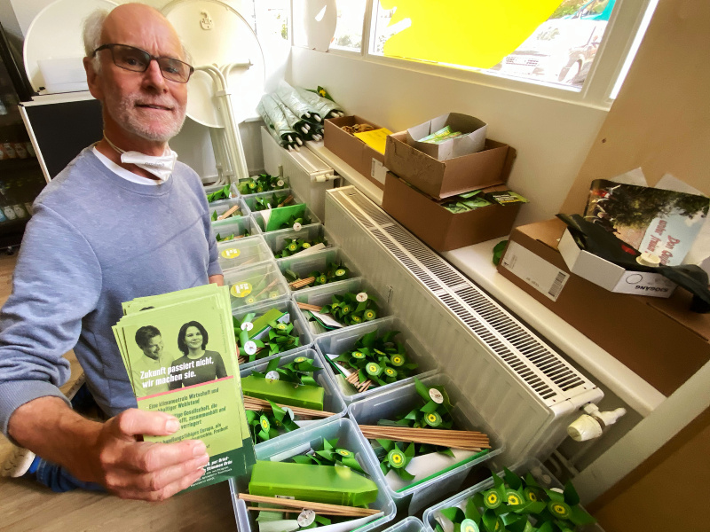 Dann war natürlich das Material zu organisieren: Erstmal sichten, was vom letzten Wahlkampf übrig geblieben ist. Was brauchten wir, was sollte neu bestellt werden?