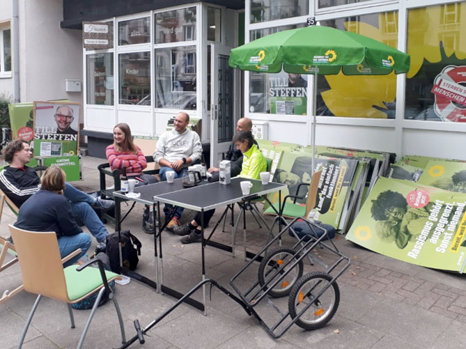 Das zu verteilende Material liegt in der Wahkampfzentrale in der Methfesselstraße 35 bereit.