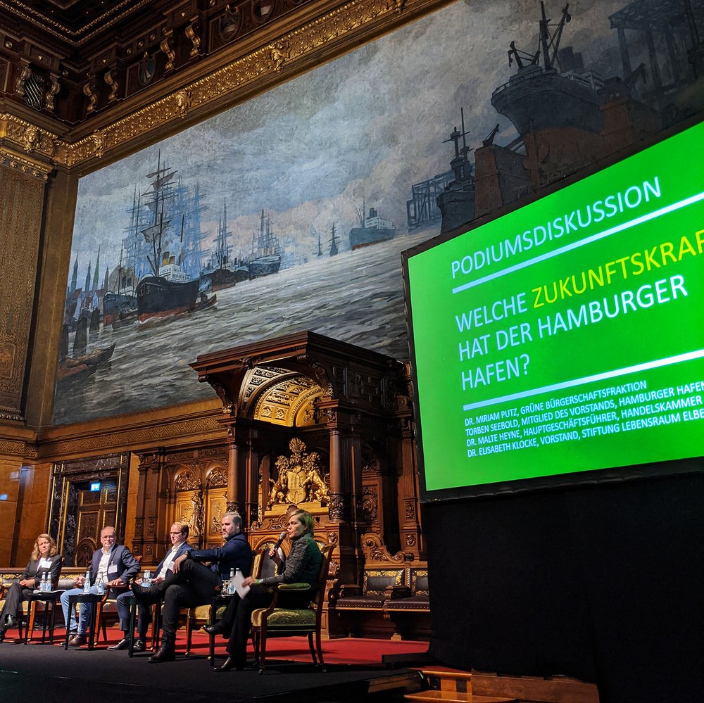Die Eimsbüttler Bürgerschaftsabgeordnete und hafenpolitische Sprecherin Miriam Putz war kürzlich Veranstalterin der ersten Grünen Hafengespräche im Hamburger Rathaus. Gemeinsam mit rund 80 Vertreter*innen der verschiedenen Interessengruppen im Hafen ging es im Festsaal ausschließlich um die Zukunft des Hafens.