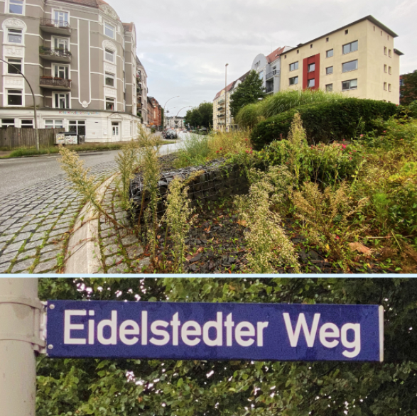 Auf der anderen Seite der Grenze galt ein anderes Baurecht, die Häuser waren kleiner. Und da, wo jetzt die Türme der Lenzsiedlung stehen, gab es bis Anfang der 1970er Jahre Kleingärten. Weiter geht’s an der U-Bahn-Station Lutterothstraße vorbei den Lenzweg entlang. Links geht die Hagenbeckstraße ab, die bis zum Groß-Hamburg-Gesetz von 1937 Kaiser-Friedrich-Straße hieß. Wir gehen daran vorbei, denn das ist schon Stellingen. Die Grenze zwischen Lokstedt und Stellingen bildet der Graben der U-Bahnlinie U2. 1927 gab es den Versuch der Stadt Altona, sich die Gemeinden Lokstedt und Niendorf einzuverleiben. Der Widerstand der Bewohner*innen dagegen war erfolgreich. Wahrscheinlich, weil dort viele Hamburger Familien nach Lokstedt aufs Land vor der Großstadt gezogen waren. Stellingen-Langenfelde kam zu Altona.