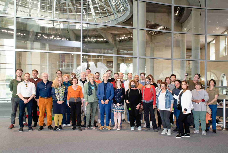 Anfang Mai ging es für ca. 40 Teilnehmer*innen aus Eimsbüttel zunächst in einer Stadtführung entlang der ehemaligen Mauer zu Schauplätzen der deutschen Teilung und Wiedervereinigung. Wir erfuhren auch, dass die Bundestags-Neubauten bewusst so gebaut wurden, dass Bürger*innen nah herandürfen, und dass „Transparenz“ auch architektonisch gezeigt werden soll. Auf der Besuchertribüne des Bundestags lernten wir, wie Bundestagssitzungen und die Arbeit der Abgeordneten funktionieren und wer wann auf der Regierungsbank sitzen muss. Anschließend stand Till der Gruppe für eine Stunde zu Fragen nach seiner Arbeit im Bundestag Rede und Antwort.