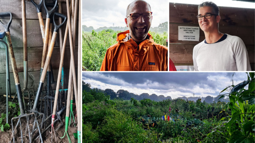 Christoph Ramcke muss sich korrigieren: „Na, ja, also nicht alles darf angebaut werden: Vor ca. 10 Jahren hatte mal jemand in der äußersten Ecke eine Cannabispflanze gezogen, die so gut gedieh, dass die Nachbarschaft aufmerksam wurde. Der Polizist, der sie abholte war ganz glücklich, denn er konnte sie als prachtvolles Anschauungsobjekt in der Fortbildung nutzen.“