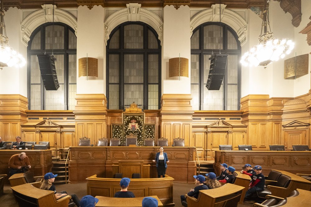 Am 19. Januar konnte die Eimsbüttler Bürgerschaftsangeordnete Sina Koriath eine ganz besondere Führung durchs Hamburger Rathaus anbieten, denn die U12-Mannschaft der Hamburg Stealers aus Eimsbüttel war zu Gast.