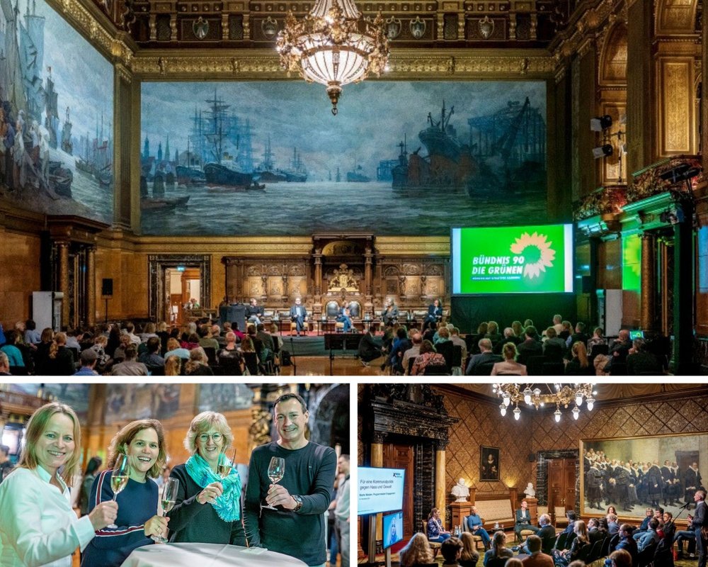 Unter 2G-Bedingungen fand am 10.11. der Bezirkspolitische Herbstempfang der GRÜNEN Bürgerschaftsfraktion statt. Etwa 200 aktive GRÜNE – Mandatsträger*innen und Kreisvorstände, LAG-Verantwortliche und Mitglieder der Grünen Jugend, eigentlich alle, die sich aktiv bei uns GRÜNEN einbringen – waren geladen, den Abend gemeinsam im ehrwürdigen Festsaal des Rathauses zu verbringen.