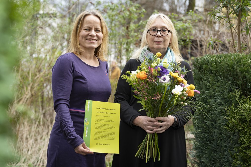 Im März knackten wir Grünen in Eimsbüttel die magische Zahl – Gabi Schlenger ist das 1.000 Mitglied in unserem Kreisverband. Tendenz weiter steigend! Wir freuen uns über diesen Zuspruch, nehmen ihn als Lob und vor allem als Ansporn, uns weiter für ein grüneres Eimsbüttel ins Zeug zu legen. Unsere Kreisvorsitzende Gaby Albers hat Gabi Schlenger persönlich gratuliert und die Gelegenheit genutzt, mehr über sie und ihre Gründe für den Parteieintritt zu erfahren.