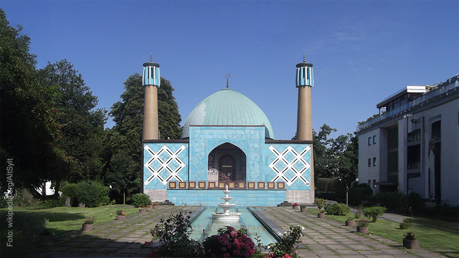 Vom Eimsbüttler Alsterufer aus hat man einen guten Blick auf die schöne Blaue Moschee am gegenüberliegenden Ufer. Hamburg hat ein besonderes Verhältnis zum Iran, denn ca. 30.000 Bürgerinnen und Bürger hier haben iranische Wurzeln. Aber die Blaue Moschee wurde bis 2024 vom Islamischen Zentrum Hamburg (IZH) geführt. Diese Organisation hat unter dem Deckmantel der Religion die verfassungsfeindliche und unmenschliche Politik der Teheraner Mullah-Diktatur vertreten und wurde deshalb verboten. Die Moschee ging vorläufig in die Verwaltung des Bundes über.