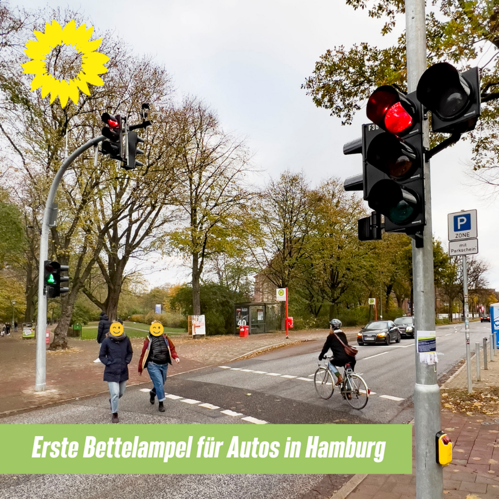2019 beantragte die Grüne Bezirksfraktion #Eimsbüttel eine fuß- und radverkehrsfreundliche Gestaltung der Kreuzungen am belebten Kaiser-Friedrich-Ufer. Nun wurde von der Behörde für Verkehr und Mobilitätswende die Umgestaltung der Ampelanlage Höhe Bundesstraße bekannt gegeben. Voila, die erste Bettelampel für Autos in Hamburg ist fertig. Mehr Infos dazu hier.