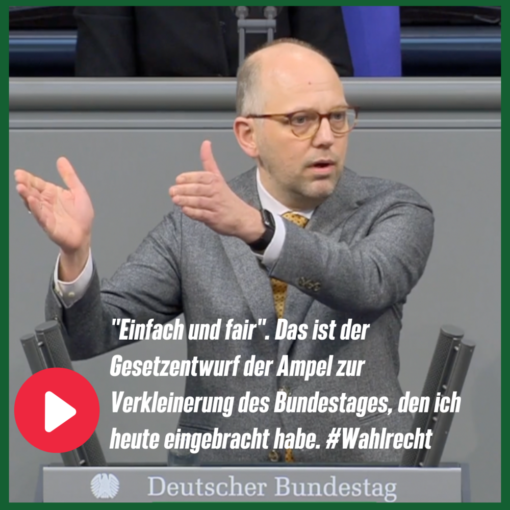 Wir reden heute hier im Deutschen Bundestag, weil wir als Fraktionen von SPD, Bündnis 90/Die Grünen und FDP einen Gesetzentwurf zur Änderung des Wahlrechts auf den Tisch des Hauses gelegt haben. Dieser Gesetzentwurf ist einfach und fair. Er ist einfach, weil er die Benennung der Stimmen klarzieht: Künftig wird mit der Hauptstimme entschieden über die Mehrheitsverhältnisse im Deutschen Bundestag. Je mehr Hauptstimmen eine Partei erhält, desto mehr Sitze erhält sie im Deutschen Bundestag. 598 Abgeordnete kommen bei jeder Wahl heraus; da gibt es keine Abweichung. Die Hauptstimme entscheidet dann also darüber, wie viele Mandate jede Partei im Deutschen Bundestag exakt erhält.