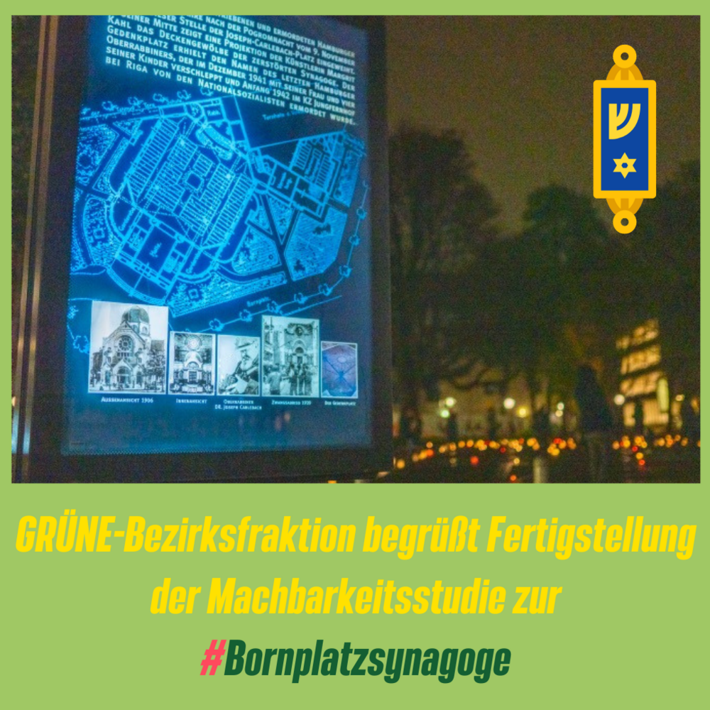 Kathrin Warnecke, Vorsitzende der GRÜNEN-Bezirksfraktion: Die Beteiligten an der Machbarkeitsstudie haben zwischen unterschiedlichen Bedürfnissen und Erfordernissen einzelner Akteure abwägen müssen und sind zu einem sehr guten Ergebnis gekommen. Das lässt sich u.a. an der Entscheidung ablesen, den Hochbunker nicht in den Synagogenbau zu integrieren und bei der Überbauung des Platzes das 1988 entstandene Bodenmosaik bei den Planungen als wichtige Zeitschicht zu würdigen und im Bau zu berücksichtigen. Wir freuen uns, dass die gesamte Jüdische Gemeinde am historischen Ort, an dem 1933 ca. 20.000 Jüdinnen und Juden lebten, ein neues Zentrum bekommt und so gestärkt wird.
