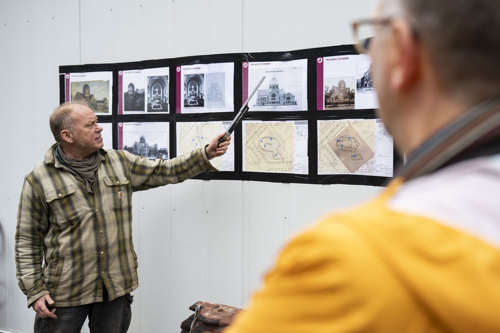 Text: Till Steffen, Foto: Zu Besuch bei den archäologischen Ausgrabungen auf dem Gelände der ehem. Bornplatzsynagoge ©Jörg Brockstedt