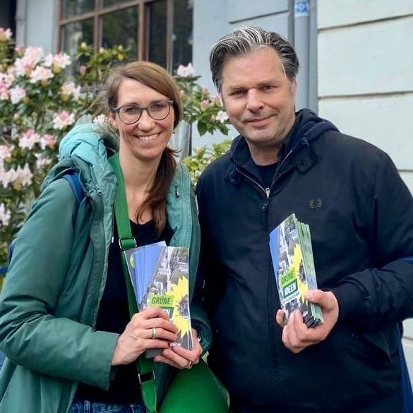 Wobei die Grenzen des Haustürwahlkampfs ja eng gesteckt sind: Es geht um den kurzen Kontakt, auf keinen Fall um die politische Diskussion, ein auf die eigene Seite ziehen gar; es geht letztlich um die Mobilisierung derer, die am wahrscheinlichsten eh GRÜN wählen würden. Dem Vernehmen nach ist genau dieser kurze Kontakt im persönlichen Umfeld ein ganz schön wirksames Instrument, um die Wahlbeteiligung zu steigern. So oder so: Es macht tatsächlich Spaß, jedenfalls in meinem Kiez, den ich auf diese Weise noch mal ganz anders kennengelernt habe.