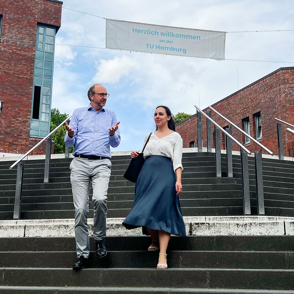Ein erster Antrittsbesuch der neuen Fachsprecherin führte an die Technische Universität Hamburg, wo Sina von Präsident Prof. Dr.-Ing. Andreas Timm-Giel empfangen wurde. Im Gespräch hat sie sich einen Überblick über die bevorstehenden Schritte der zweiten Wachstumsphase der TU Hamburg verschafft. Bei der anschließenden Führung durfte Sina den beindruckenden Campus der Technischen Universität, der seit kurzem unter Denkmalschutz steht, genauer kennenlernen.