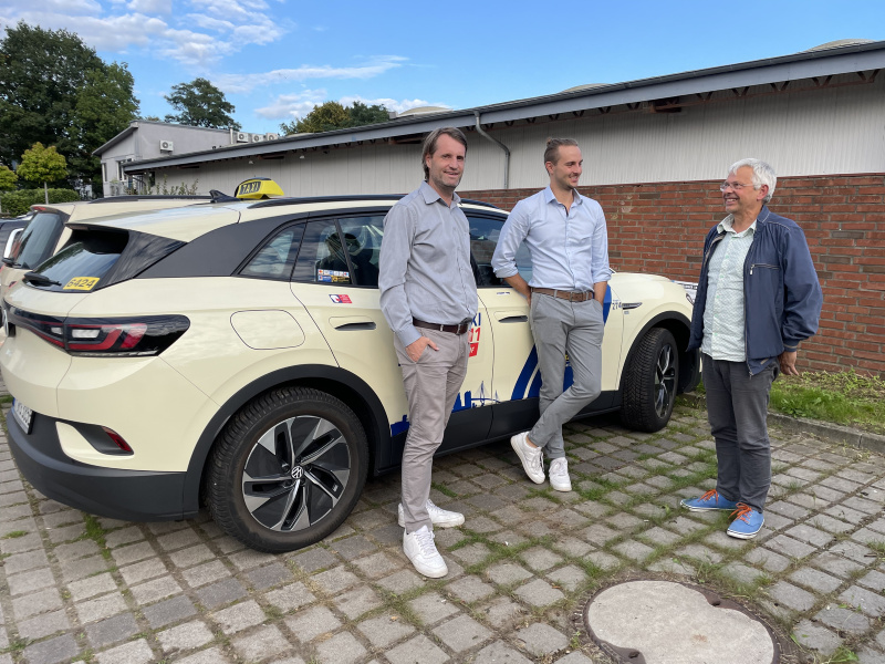 Foto, vlnr.: Dominik Lorenzen und Johannes Alexander Müller, Mitarbeiter von Hansa Taxi