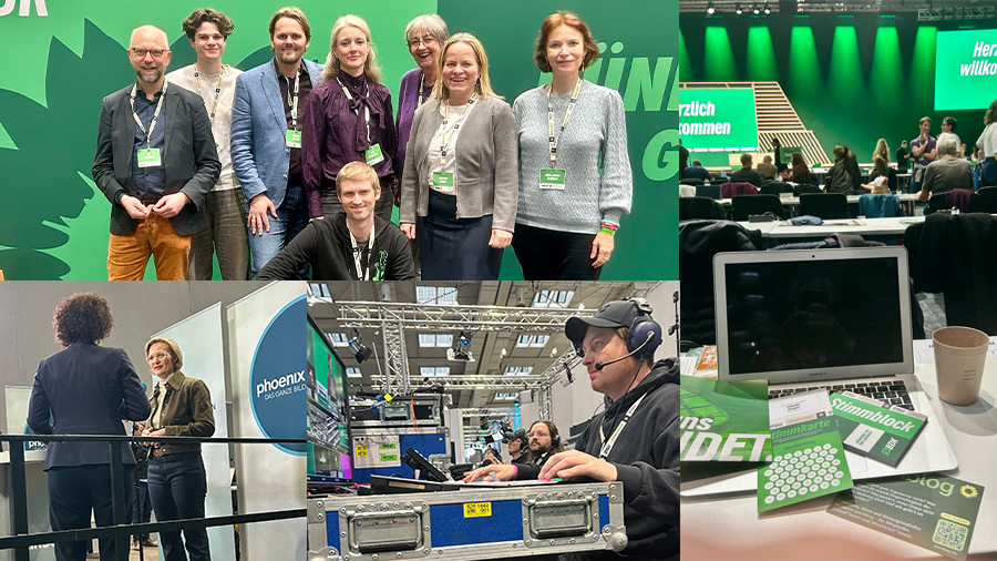 Den Journalist:innen von Phönix und ZDF bei der Arbeit zuschauen. Mikrofon haltenden Reporter:innen , die durch die Reihen schleichen und Fragen stellen, beobachten, Technik bei der digitalen Abstimmung durchschauen und nutzen, Pause machen und am Glücksrad eines Sponsors drehen, Nüsse und Sticker abgreifen.