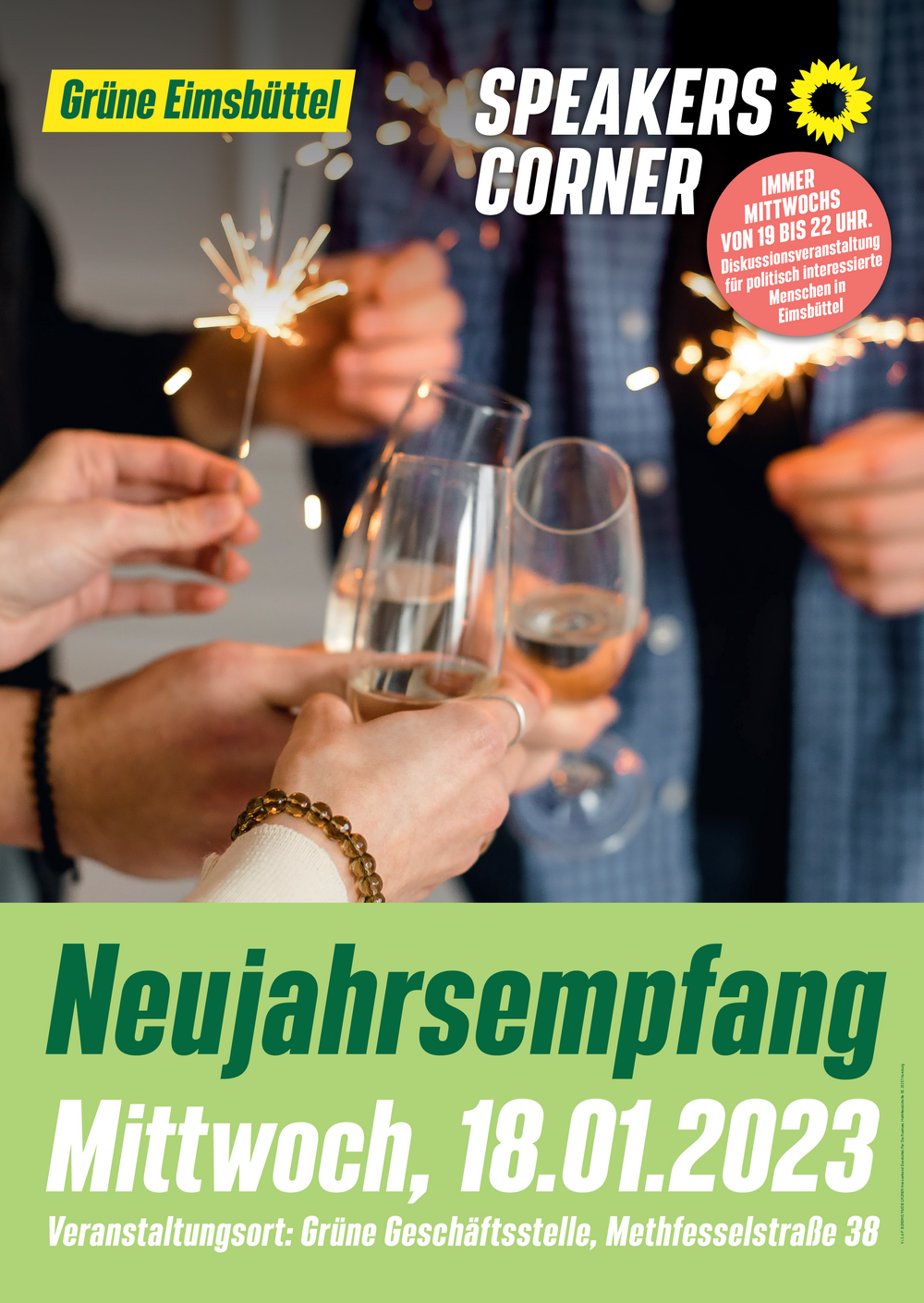 Unsere erfolgreiche Veranstaltungsserie am Mittwochabend startet ins neue Jahr: Die erste Speakers´ Corner nach der Weihnachts-/Neujahrspause findet am 18.01.2023 ab 18 Uhr in der Methfesselstraße 38 statt. Allerdings wird dieses Mal niemand auf die Bierkiste steigen. Nachdem wir das alte Jahr mit Glühwein, Restkeksen und Tills politischem Jahresrückblick haben ausklingen lassen, ist es jetzt an der Zeit, das neue Jahr gebührend zu empfangen. Bei einem Gläschen Sekt und gewohnt guter Laune wird der Kreisvorstand einen kurzen Ausblick auf die Pläne für 2023 geben, anschließend wollen wir die Gelegenheit zum fröhlichen Austausch nutzen.