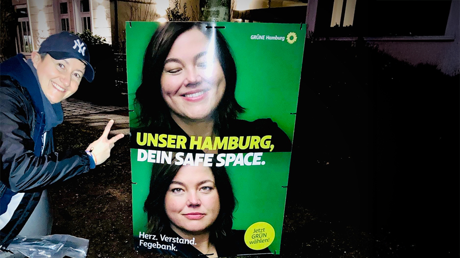 Meine erste Aufgabe: Eimsbüttel „begrünen“. Alles klar, dann mal los. 25 Plakate wollten ein neues Zuhause finden – an Masten und Bäumen – und natürlich so, dass die Bürger*innen ihre Spitzenkandidat*innen immer fest im Blick haben. Nach vier Stunden zogen meine Teampartnerin und ich das letzte Plakat aus dem Auto, es war geschafft und ich ein wenig stolz. Ich war jetzt wirklich Wahlkampfhelferin.