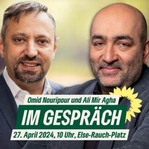 Anlässlich der bevorstehenden Wahlen wird Ali Mir Agha mit unserem Bundesvorsitzenden über Europa- und Bezirkspolitik sprechen. Die liberalen Demokratien in Europa geraten zunehmend unter Druck von rechts. Wie gehen wir in einer komplexer werdenden Welt mit einfachen populistischen Antworten um? Wie können wir für unsere GRÜNEN nachhaltigen Lösungen werben? Wie können wir unsere Demokratie wehrhaft machen? Das sind nur einige Fragen, die an diesem Vormittag diskutiert werden sollen.