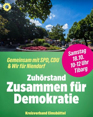 Entstanden ist die Idee eines Zuhörstands unter dem Motto Zusammen für Demokratie im Rahmen des Runden Tisches Wir für Niendorf, der seit über zehn Jahren die Arbeit mit Geflüchteten im Stadtteil begleitet.